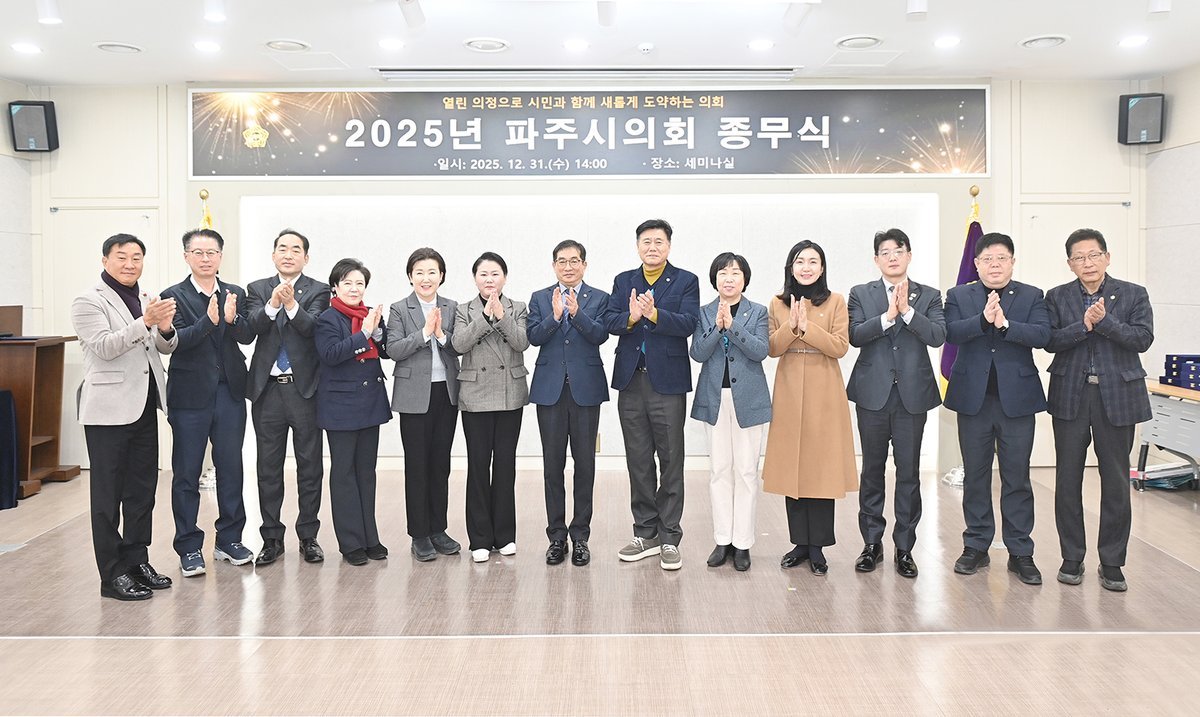 [금요저널] 파주시의회는 12월 31일 오후 2시, 파주시의회 1층 세미나실에서 2025년 종무식을 개최하면서 우수의원 표창에 대한 표창 전수식을 진행했다.