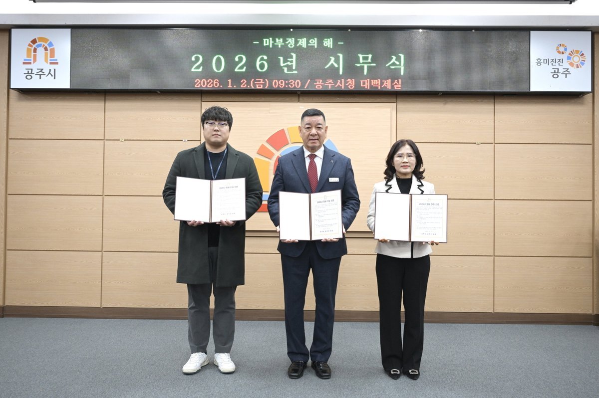 [금요저널] 공주시는 2일 시청 대백제실에서 열린 시무식에서 시장을 비롯한 공직자 대표가 ‘2026년 공직자 청렴 다짐 선언문’을 함께 낭독하며 청렴 실천 의지를 다졌다고 밝혔다.