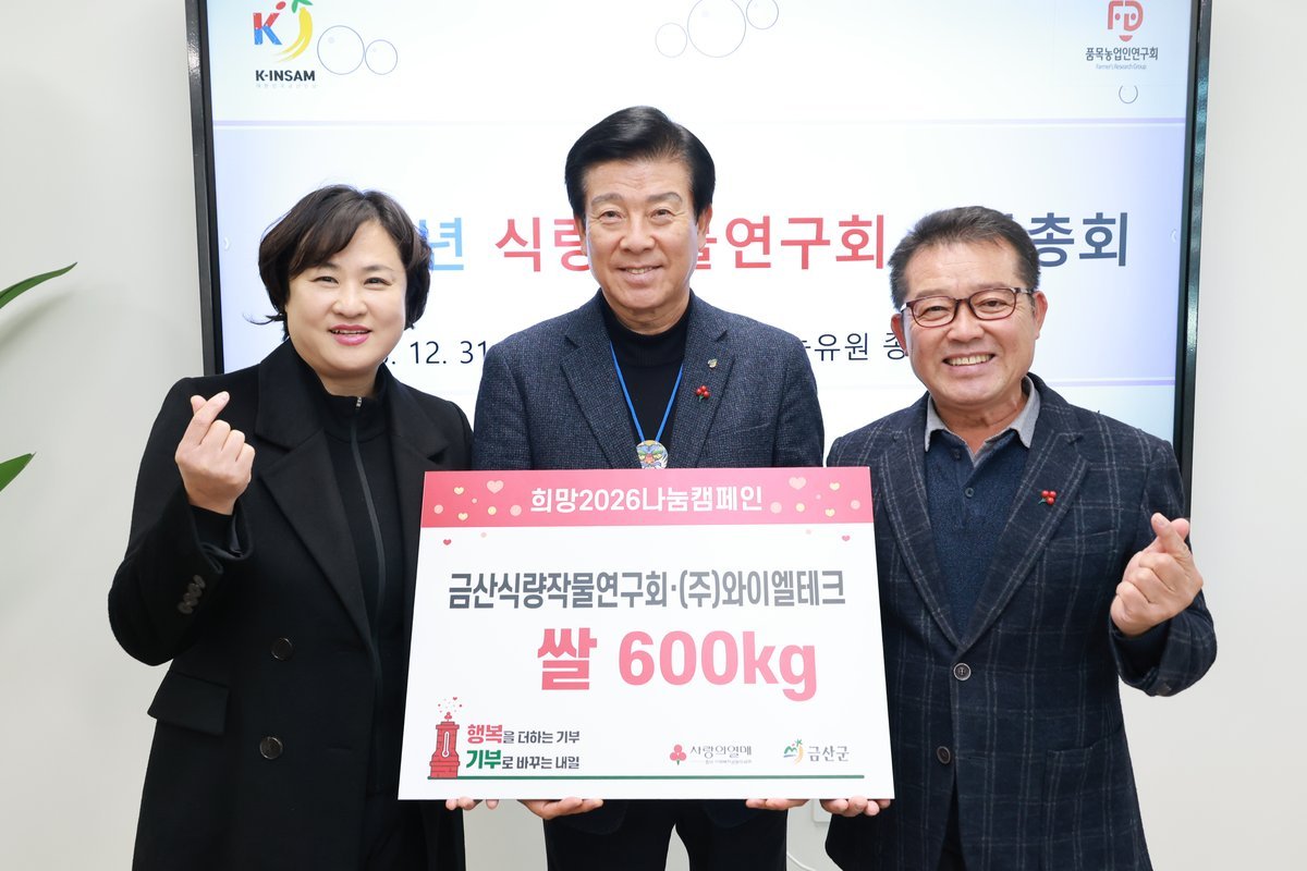 이날 기탁에는 식량작물연구회와 ㈜와이엘테크가 함께 희망2026 나눔캠페인에 동참하며 따뜻한 나눔의 의미를 더했다.