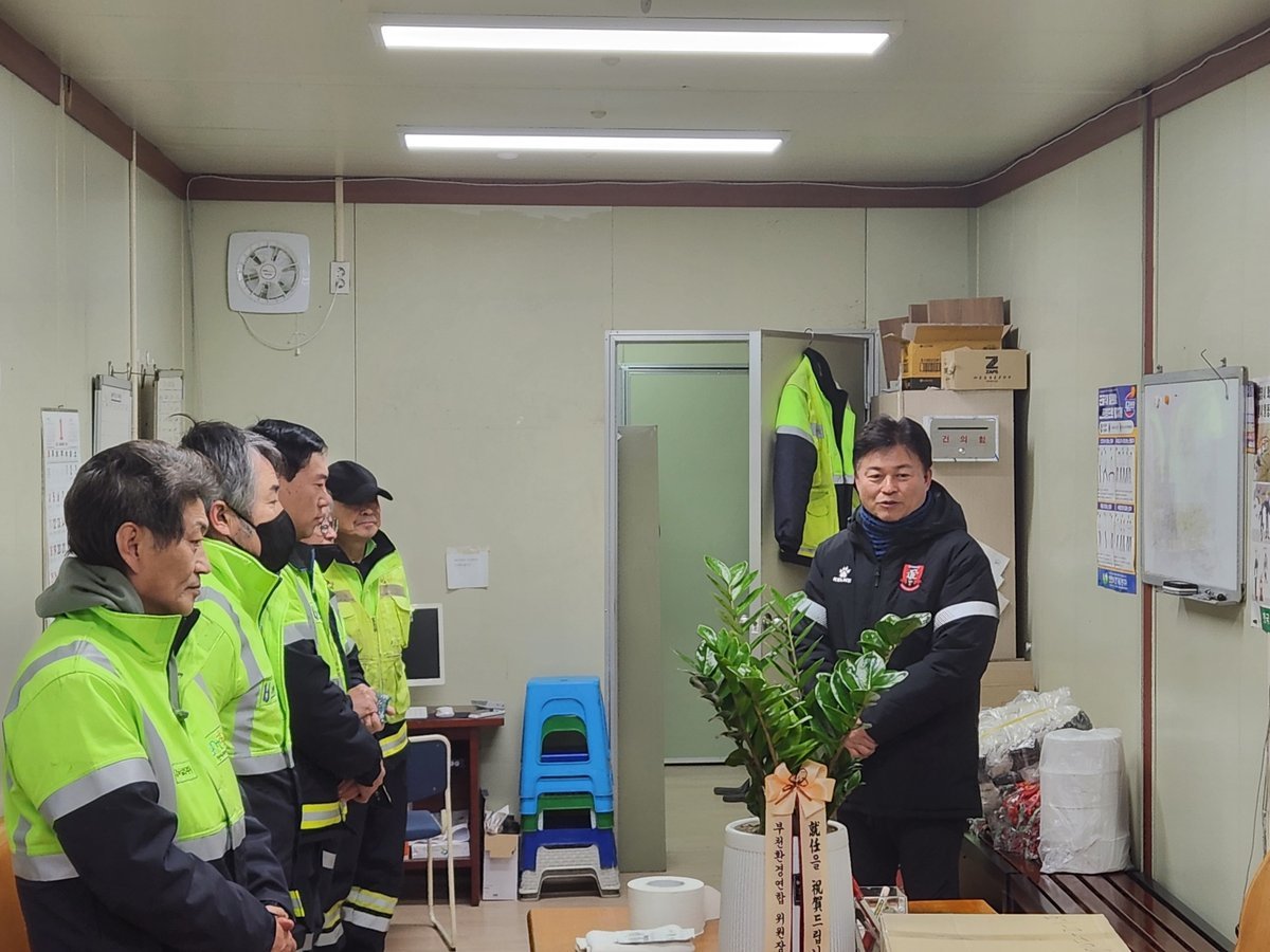 [금요저널] 부천시는 1월 2일 새벽 5시, 새해 첫 업무로 부천자원순환센터와 생활폐기물 수집·운반 작업 현장을 찾아 환경미화원들을 격려했다.