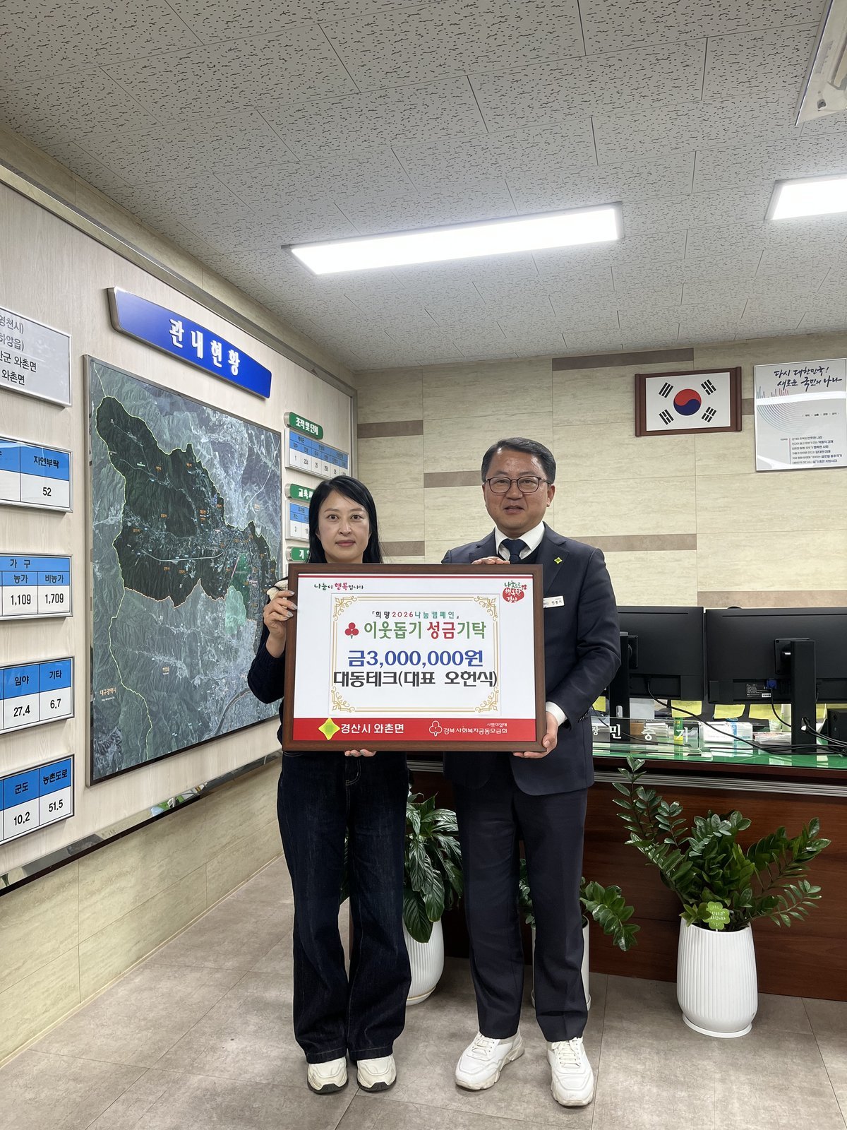 [금요저널] 연말을 맞아 와촌면「희망 2026 나눔 캠페인」에 동참하는 와촌면 기업의 기부가 이어지면서 연말 사랑의 온도가 뜨겁게 오르고 있다.