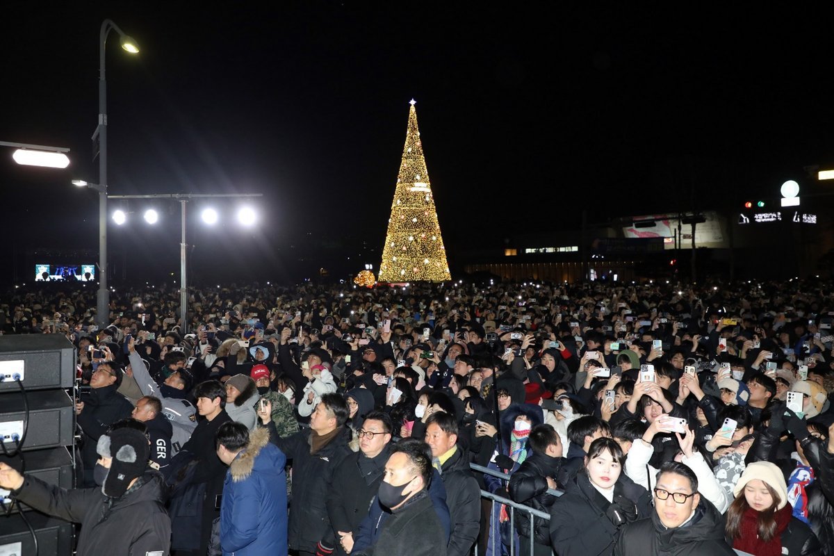 행궁광장을 찾은 약 3000여명의 수원시민들은 자정 타종 이후 따뜻한 떡국을 나누며 새해의 희망과 안녕을 기원하는 뜻깊은 시간을 보냈다.
