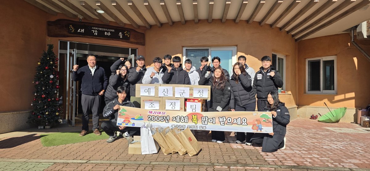 [금요저널] 예산군은 예산군청 직장운동경기부 조정선수단이 연말연시를 맞아 덕산면에 위치한 새감마을을 방문해 100만원 상당의 후원물품을 전달했다고 밝혔다.
