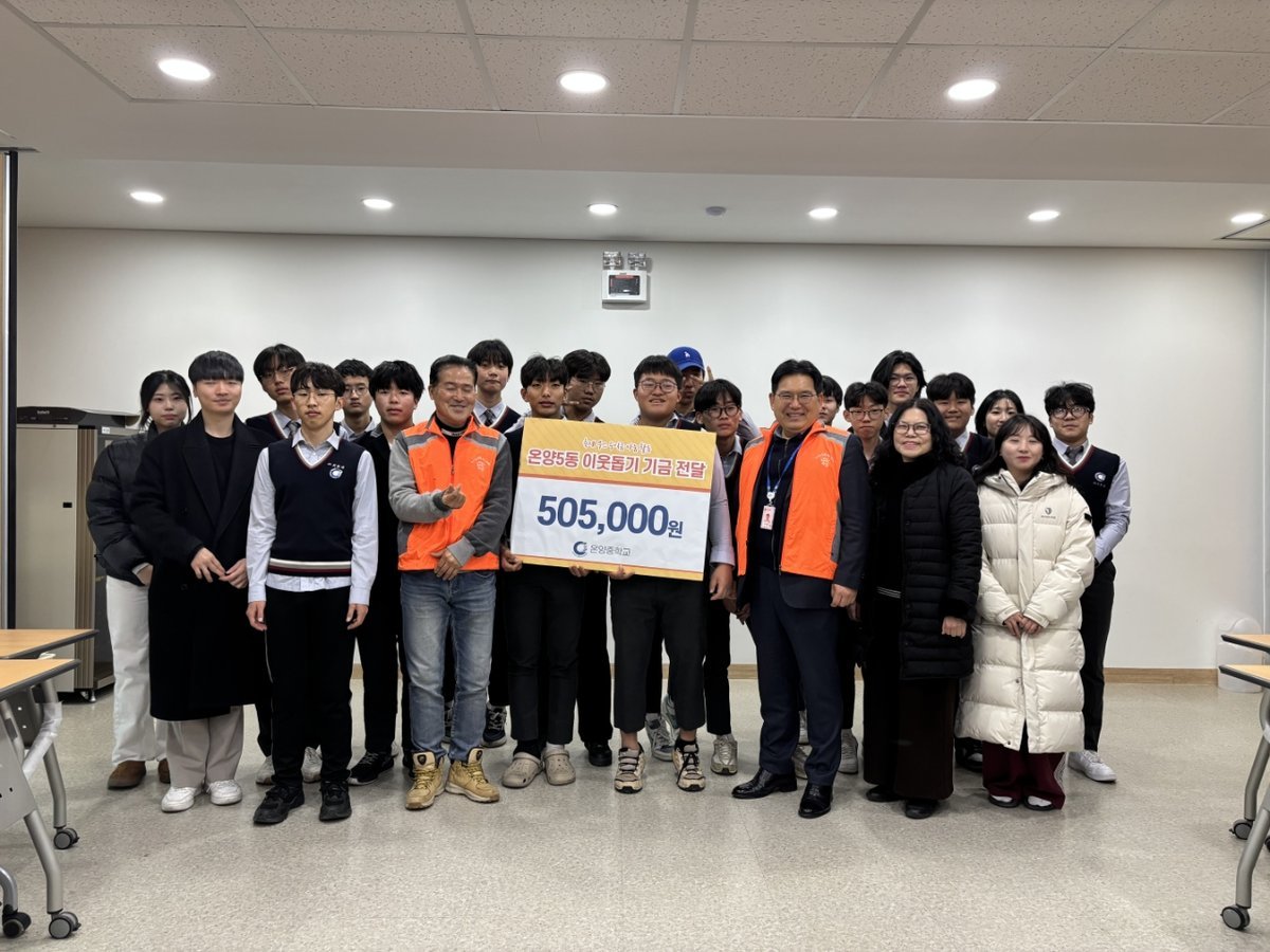 이번 후원금은 지난해 12월 31일 열린 온양중학교 '2025학년도 은행제 축제한마당'에서 교사와 학생들이 함께 이웃돕기 부스를 운영하며 자발적으로 마련한 것으로, 지역 내 도움이 필요한 취약계층 지원에 사용될 예정이다.