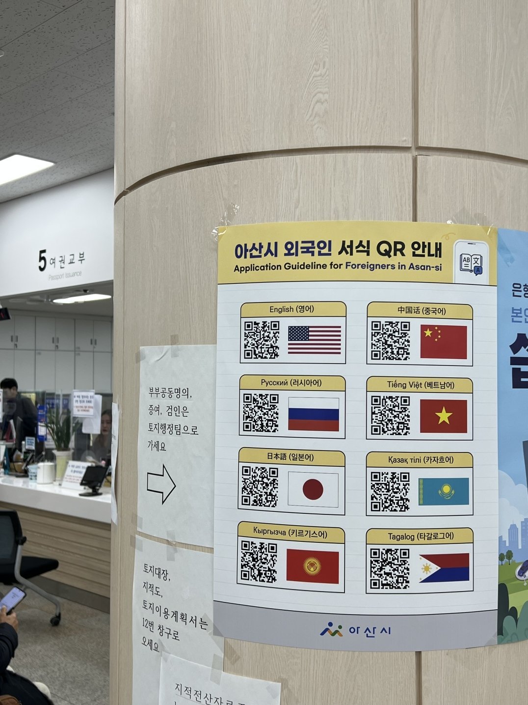 아산시 외국인 민원서식 QR코드 로 더 편리하게