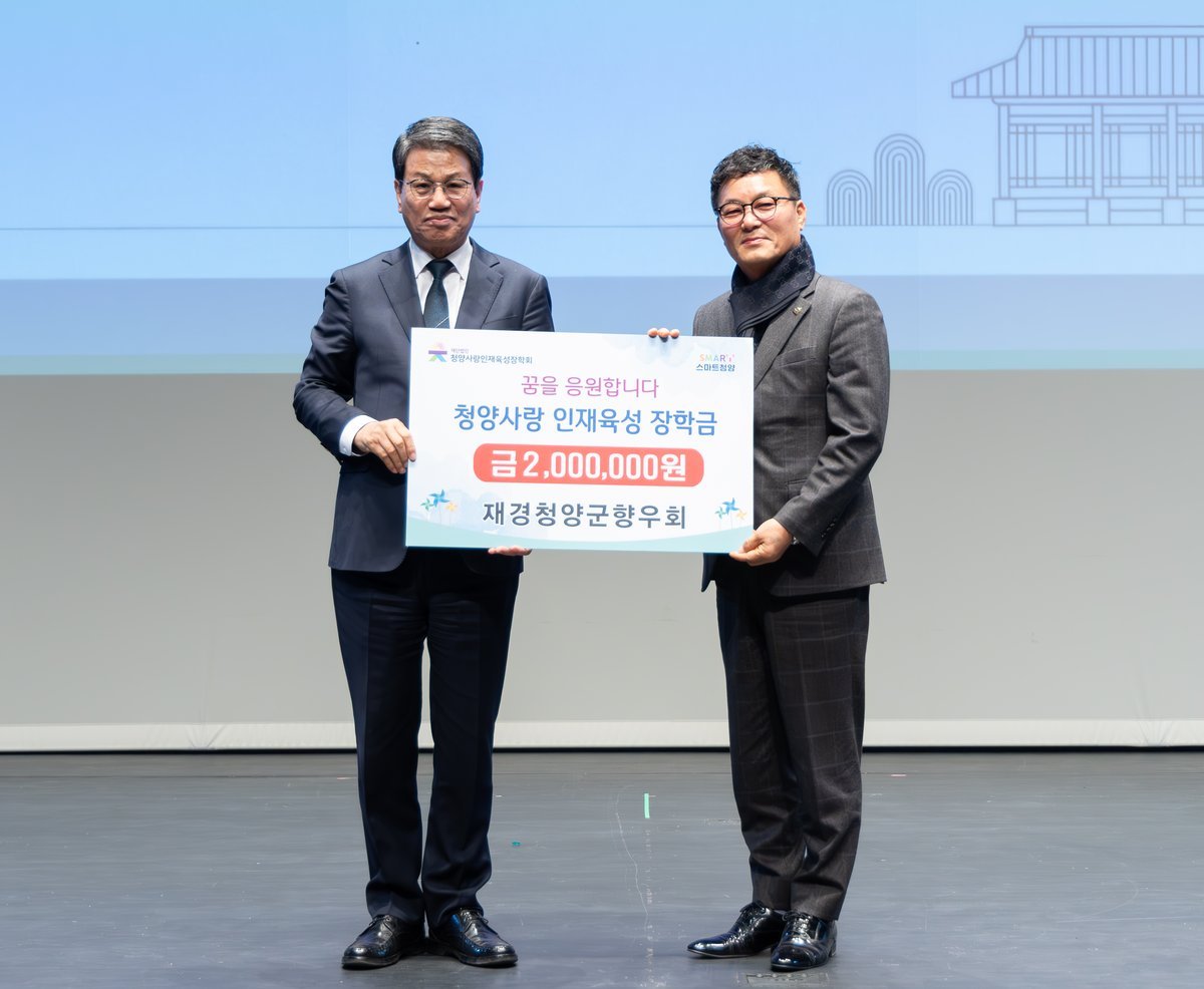 윤종훈 회장은 “비록 고향을 떠나 있지만, 청양의 발전과 아이들의 성장을 언제나 응원하고 있다”며, “작은 정성이지만 학생들이 꿈을 키워가는 데 도움이 되기를 바란다”고 전했다.