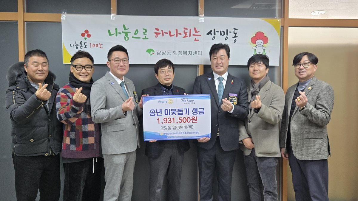 영주중앙로타리클럽은 평소 지역사회 발전과 주민 복지 향상을 위해 다양한 사회공헌 활동을 지속해 오고 있으며, 최근 상망동 소외계층을 위한 사랑의 집수리 봉사활동에 이어 '희망 2026 나눔캠페인 '에 동참하는 등 이웃사랑 실천에 앞장서고 있다.
