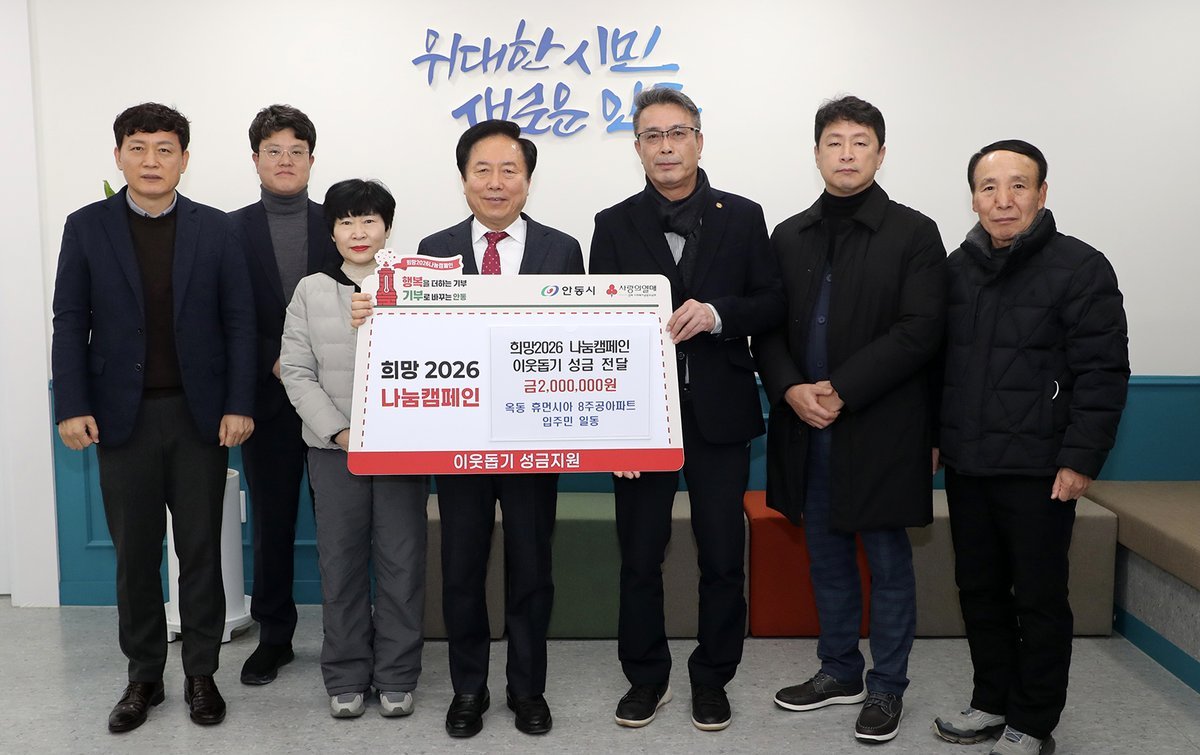 권기창 안동시장은 “매년 귀한 마음을 모아 전해주시는 옥동 휴먼시아 8단지 주민분들께 깊이 감사를 전하고, 기부해 주신 귀한 성금은 우리 시 취약계층 대상자들이 따뜻한 연말을 보낼 수 있도록 잘 전달하겠다”고 전했다.
