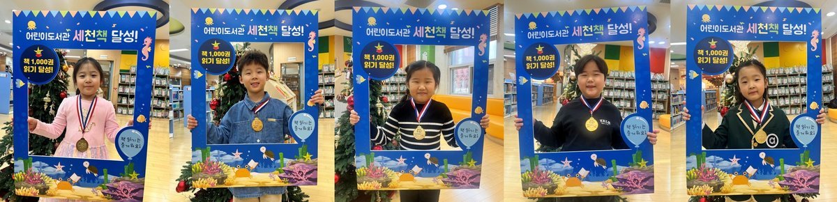 이번 완독의 영예를 안은 어린이는 107호 이예담, 108호 이예준, 109호 안재은, 110호 이우재, 111호 정해인 어린이로, 도서관은 이들의 성취를 축하하기 위해 인증서와 메달을 수여하는 기념식을 진행했다.
