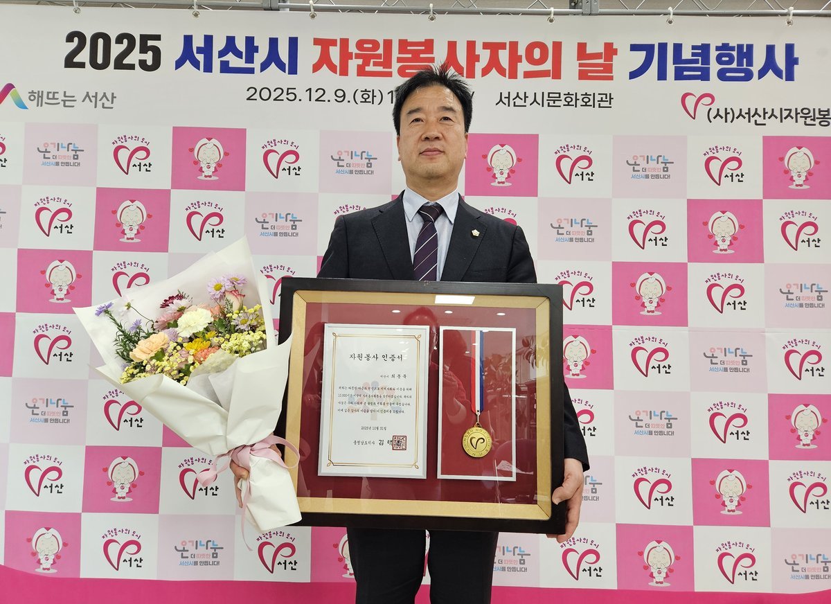 [금요저널] 서산시의회 최동묵 의원이 20년이 훌쩍 넘는 자원봉사 활동과 꾸준한 헌혈 실천으로 2025년 12월, 두 개의 뜻깊은 상을 연이어 수상하는 영예를 안았다.