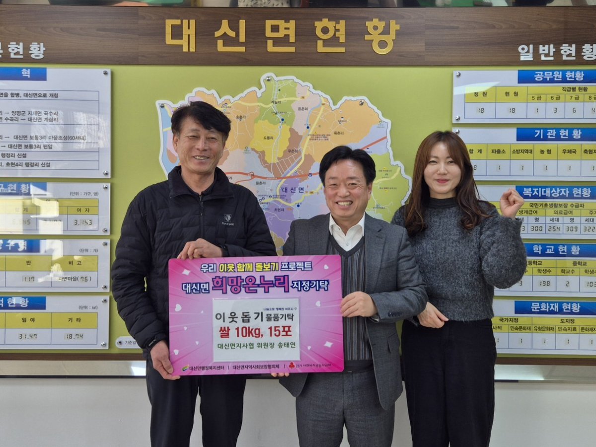 송태연 위원장은 "기부를 권하면서 스스로 실천하지 못한 것 같아 마음에 걸렸다. 작은 정성이지만 이웃들에게 도움이 되길 바라고 앞으로도 대신면 지역사회보장협의체 활성화와 복지사각지대 없는 대신면을 만들기 위해 최선을 다하겠다."고 말했다.