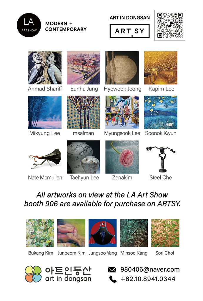 전시 작가들은 각자의 언어로 인간과 자연, 기억과 치유, 희망과 연결을 이야기하고 있으며, 서로 다른 개성적 작품들이 모여 하나의 거대한 스펙트럼을 이루며 LA 아트쇼의 아트인동산 부스공간으로 관람객을 맞이하고 있다.