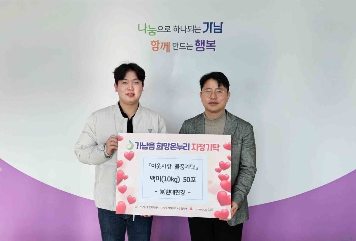 이번 기탁은 경기 침체로 어려운 여건 속에서도 지역 내 소외된 이웃을 먼저 생각하는 현대환경의 나눔 실천으로 이루어졌으며, 전달된 쌀은 도움이 필요한 이웃들에게 소중히 전달될 예정이다.