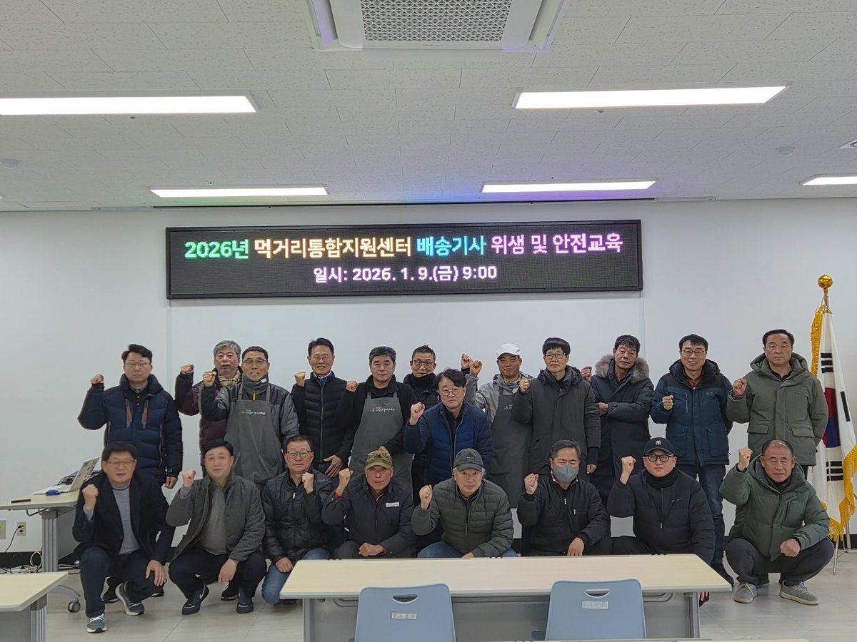 [금요저널] 아산시먹거리재단은 1월 9일, 2026년 새해맞이 신선하고 안전한 지역 농산물의 배송을 위해 공공급식 배송 기사를 대상으로 '위생 및 안전교육'을 실시했다고 밝혔다.
