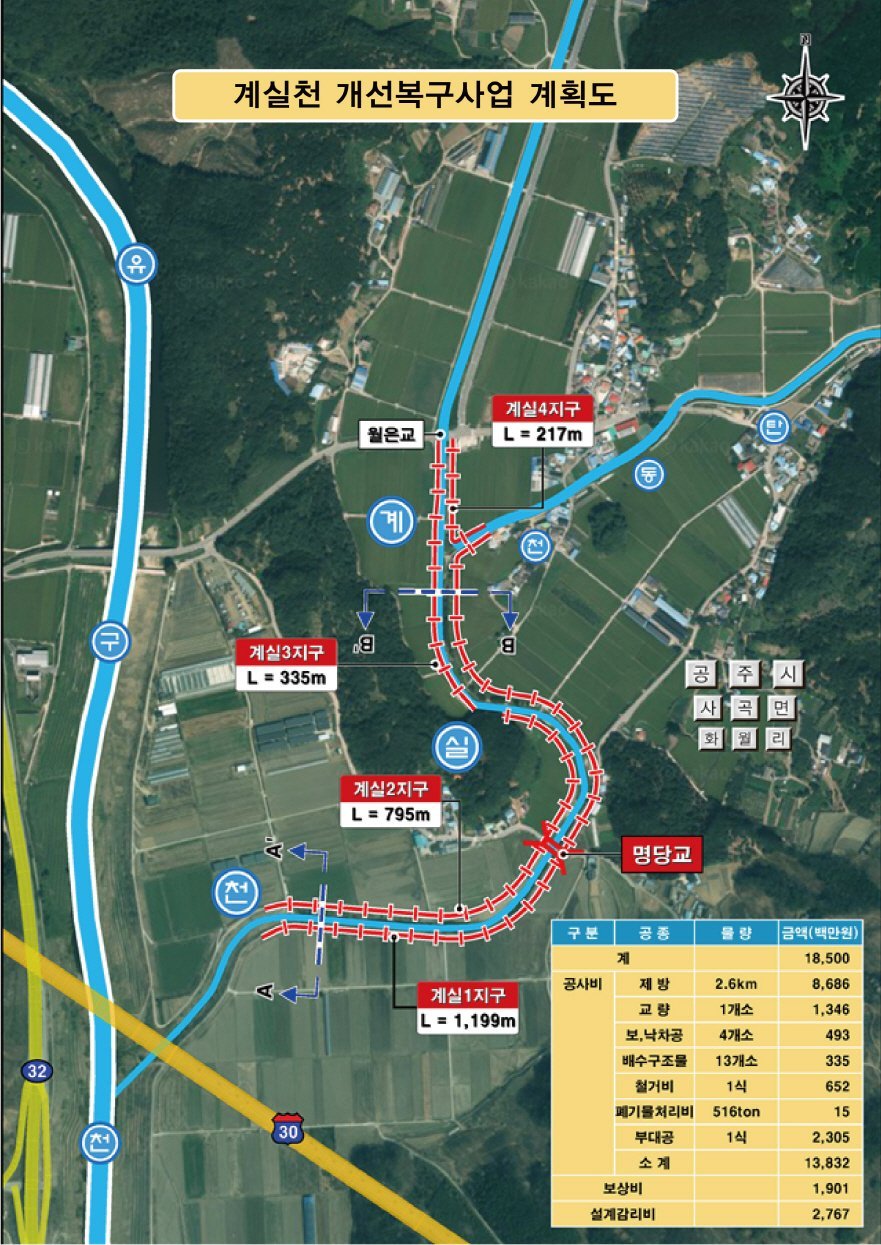 [금요저널] 공주시는 지난해 집중호우로 큰 피해가 발생한 사곡면 화월리 계실천 일원에 총사업비 185억 원을 투입해 ‘계실천 개선복구사업’을 본격 추진한다고 12일 밝혔다.