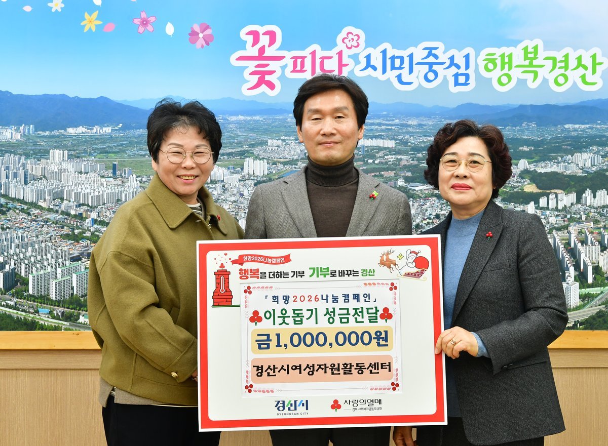 경산시여성자원활동센터, 이웃돕기 성금 1백만 원 전달 (경산시 제공)
