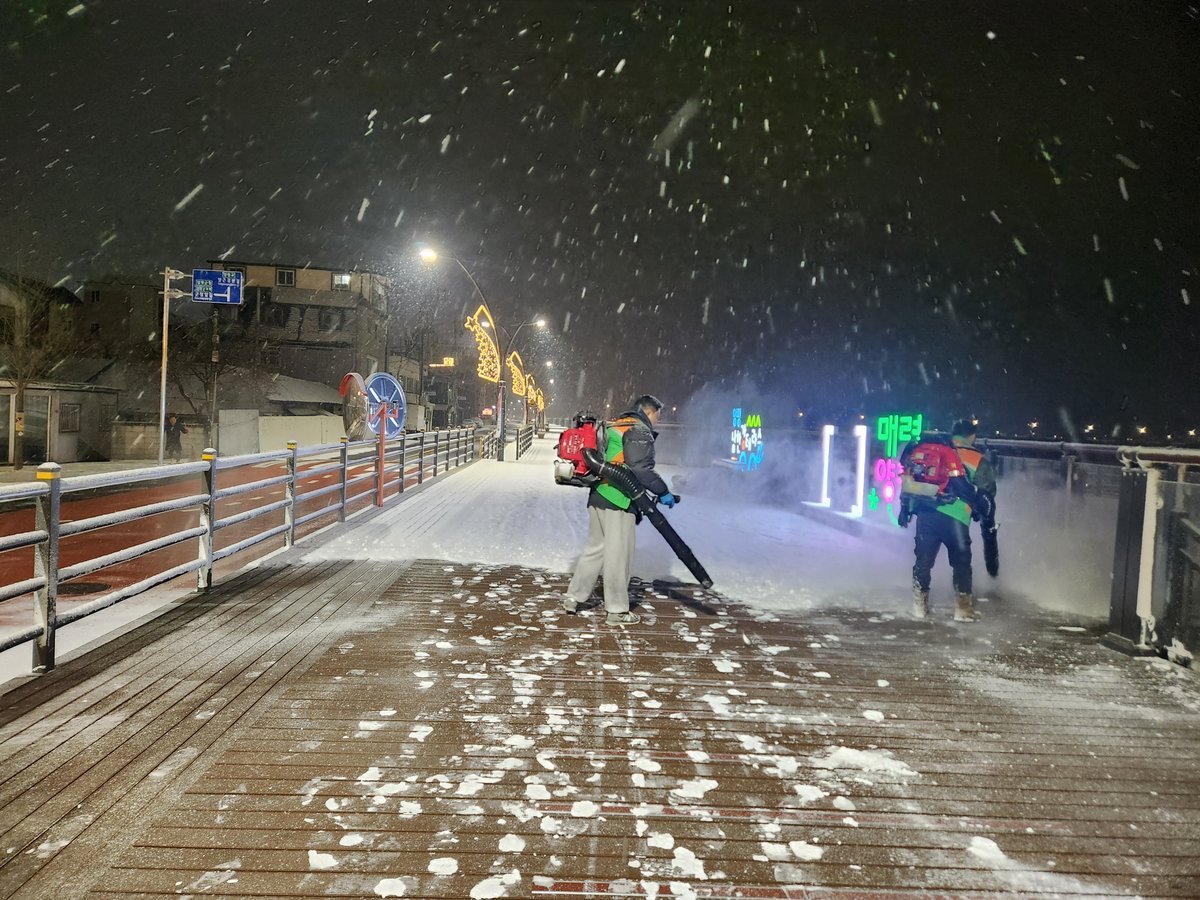 이번 작업은 군과의 협력을 통해 제설장비인 브로워를 활용해 효율적으로 추진됐으며, 자율방재단은 추가 강설에 대비해 24시간 비상근무 체계를 유지하며 주민 민원에도 신속히 대응하고 있다.