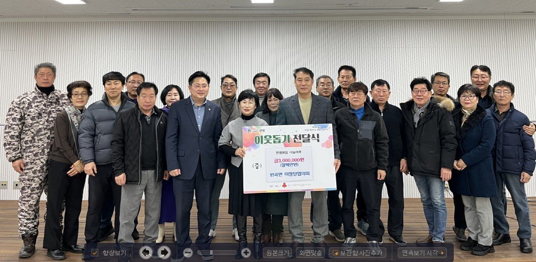 한편, 이번에 기탁된 성금은 관내 저소득층 및 복지 사각지대에 놓인 가구를 지원하는 데 활용될 예정이다.