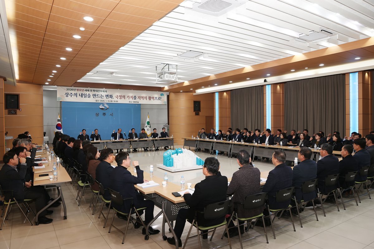 [금요저널] 상주시는 지난 1월 13일 37개 부서장, 24개 읍‧면‧동장 및 국·소장이 참석한 가운데 2026년 병오년 첫 확대간부 회의를 시청 대회의실에서 개최하였다.