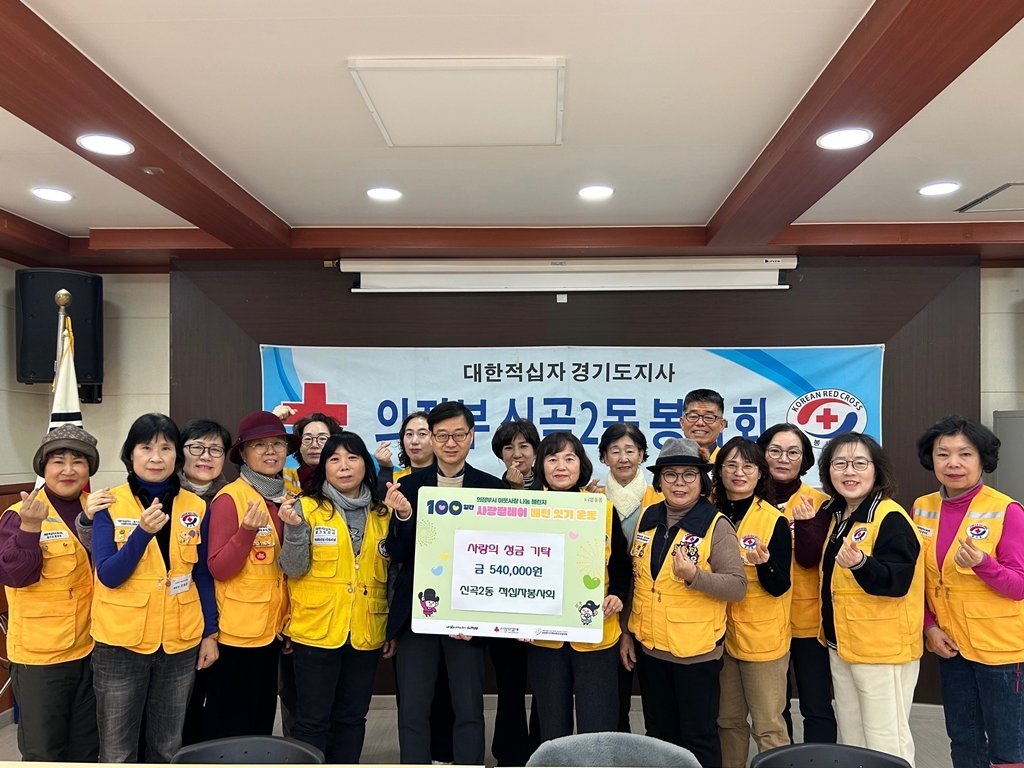 [금요저널] 의정부시 신곡2동주민센터는 1월 12일 신곡2동 적십자봉사회가 ‘100일간 사랑릴레이 배턴 잇기’의 일환으로 이웃돕기 성금 54만 원을 기탁했다고 밝혔다.