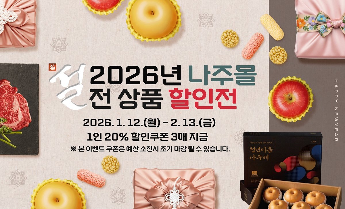 나주시 관계자는 "설 명절을 맞아 시민과 소비자들이 부담 없이 우수한 나주 농특산물을 만나볼 수 있도록 할인 폭과 혜택을 강화했다"며 "2026년 나주 방문의 해를 계기로 앞으로도 다양한 기획전을 통해 나주몰 이용 만족도를 높여가겠다"고 말했다.