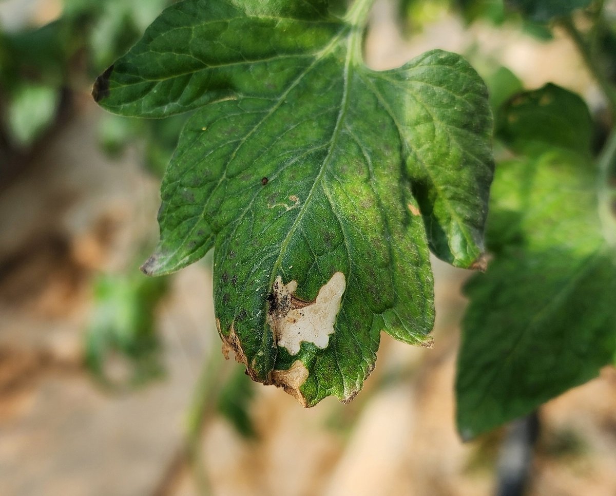 토마토 뿔나방 유충 피해를 본 잎 나주시 제공
