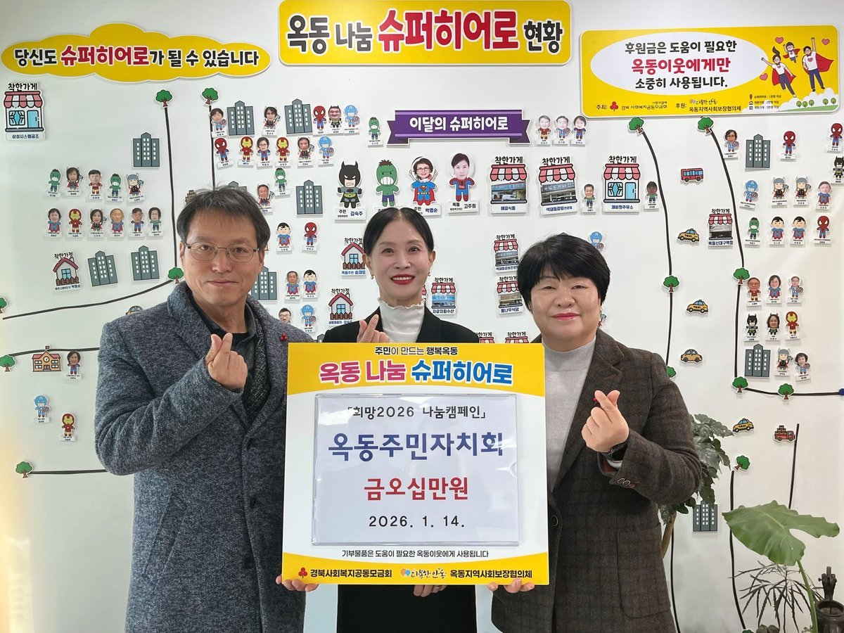 [금요저널] 안동시 옥동 주민자치회가 1월 14일 지역 내 어려운 이웃을 돕기 위해 희망2026 나눔캠페인에 동참하며 성금 50만 원을 기부했다.