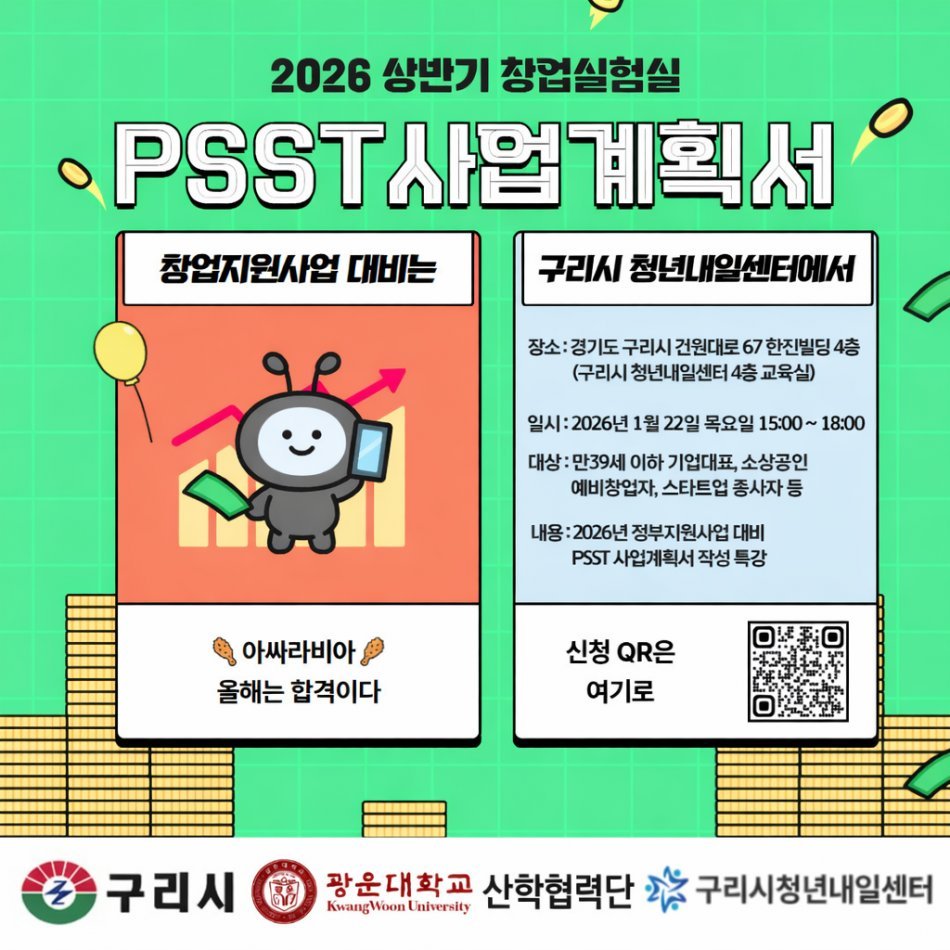 이번 프로그램은 2026년 대형 정부 창업지원 사업을 대비한 PSST 전략 사업계획서 작성 특강으로, 실질적인 창업 역량 강화를 목표로 기획됐다.