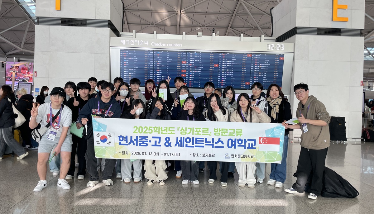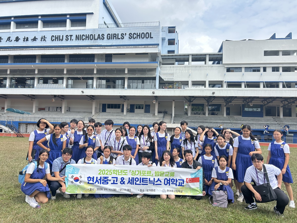 현서중·고등학교(교장 백선미)는 2026년 1월 13일(화)부터 17일(토)까지 3박 5일 일정으로 싱가포르에서 St. Nicholas Girls’ School과 국제 방문교류를 진행 중이며, 15일(목)에는 버디 학생들과 함께 수업 참여·점심 교류·견학 활동을 이어갈 예정이라고 밝혔다.