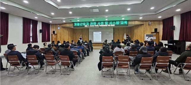 교육은 외국인 계절근로자 프로그램의 흐름을 설명하고 관련 서류 및 제출 절차, 근로기준법과 출입국관리법 등 법적 요구 사항을 안내하는 방식으로 진행됐다.