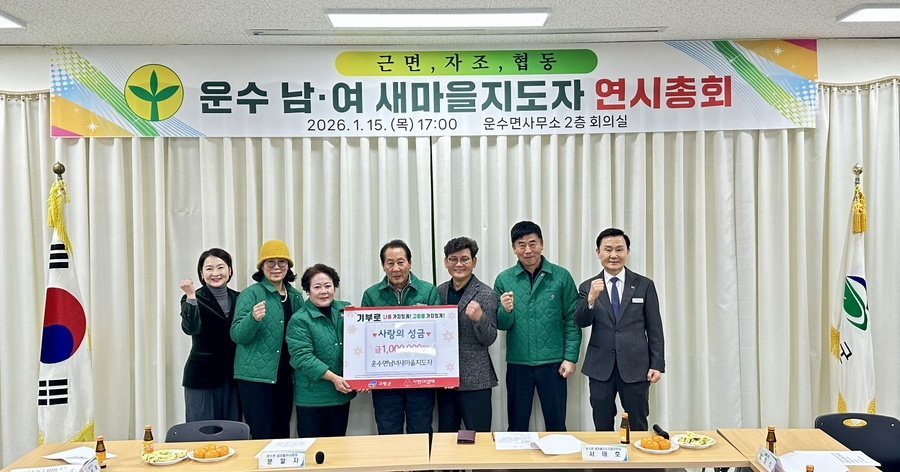특히 이날 운수면 남녀새마을지도자협의회는 지역 내 어려운 이웃들이 따뜻한 새해를 맞이하기를 바라는 마음을 담아 사랑의 성금 100만원을 기탁하며 나눔 실천에 앞장섰다.