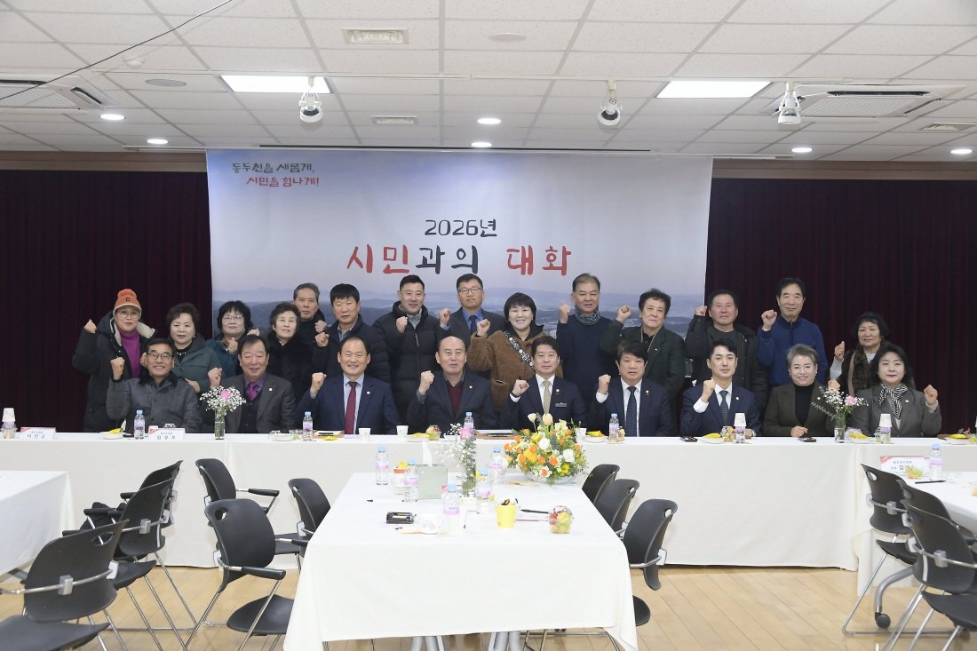 [금요저널] 상패동 행정복지센터는 2026년 1월 14일 박형덕 동두천시장을 비롯해 시·도의원, 지역 사회단체장 및 주민 등 50여명이 참석한 가운데 '2026년 시민과의 대화'를 개최했다.