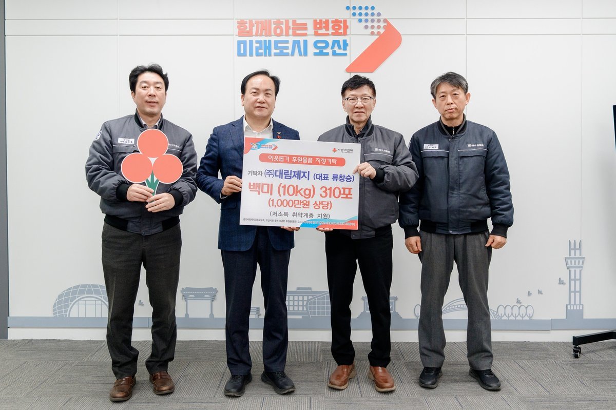 오산시 관계자는 “지역사회를 위한 지속적인 나눔을 실천해 온 ㈜대림제지에 감사드린다”며 “기탁된 백미가 필요한 이웃들에게 적시에 전달될 수 있도록 하겠다”고 밝혔다.