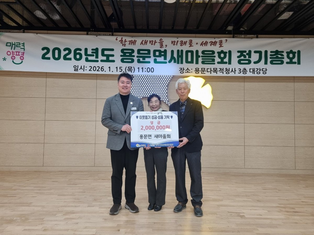 홍명기 용문면장은 “매년 변함없이 이웃사랑을 실천해 주시는 새마을회 회원 여러분께 깊이 감사드리며 이러한 나눔이 어려운 이웃들에게 큰 힘과 희망이 되길 바란다”며 “기탁해 주신 소중한 성금은 도움이 꼭 필요한 분들을 위해 투명하고 공정하게 사용하겠다”고 전했다.
