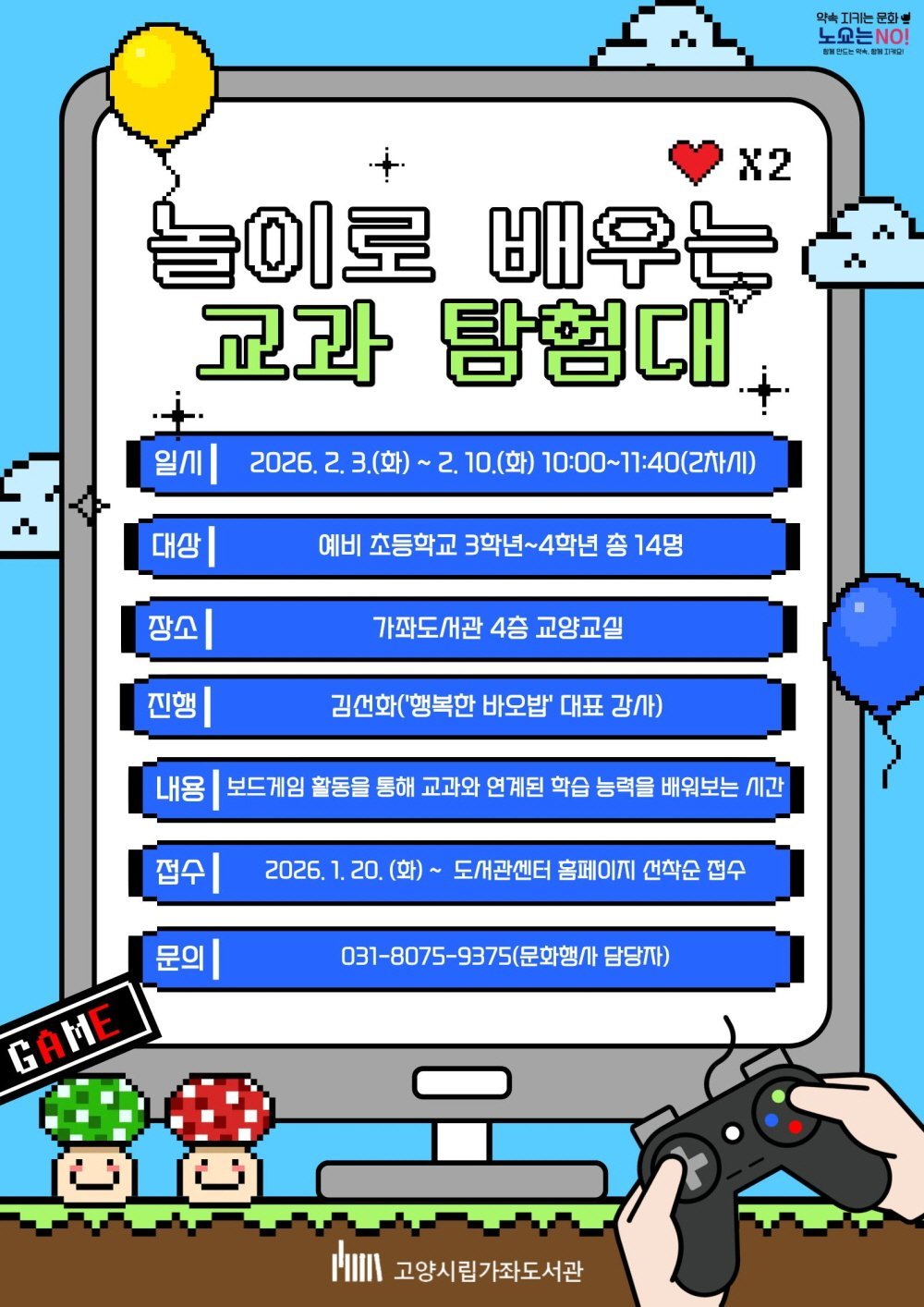 [금요저널] 고양특례시 가좌도서관은 2월 3일부터 방학특강 프로그램 ‘놀이로 배우는 교과 탐험대’을 운영한다.