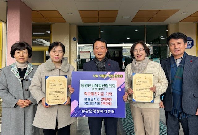 봉황면지역발전협의회의 이번 기탁은 저출산과 인구 유출로 인한 농촌 초중등 학령 인구가 급감하고 있는 현실을 감안해 관내 학생들의 타 지역 유출을 막고 타 지역 학생의 유입을 유도하고자 하는 회원들의 적극적인 성원 속에서 이루어졌다.