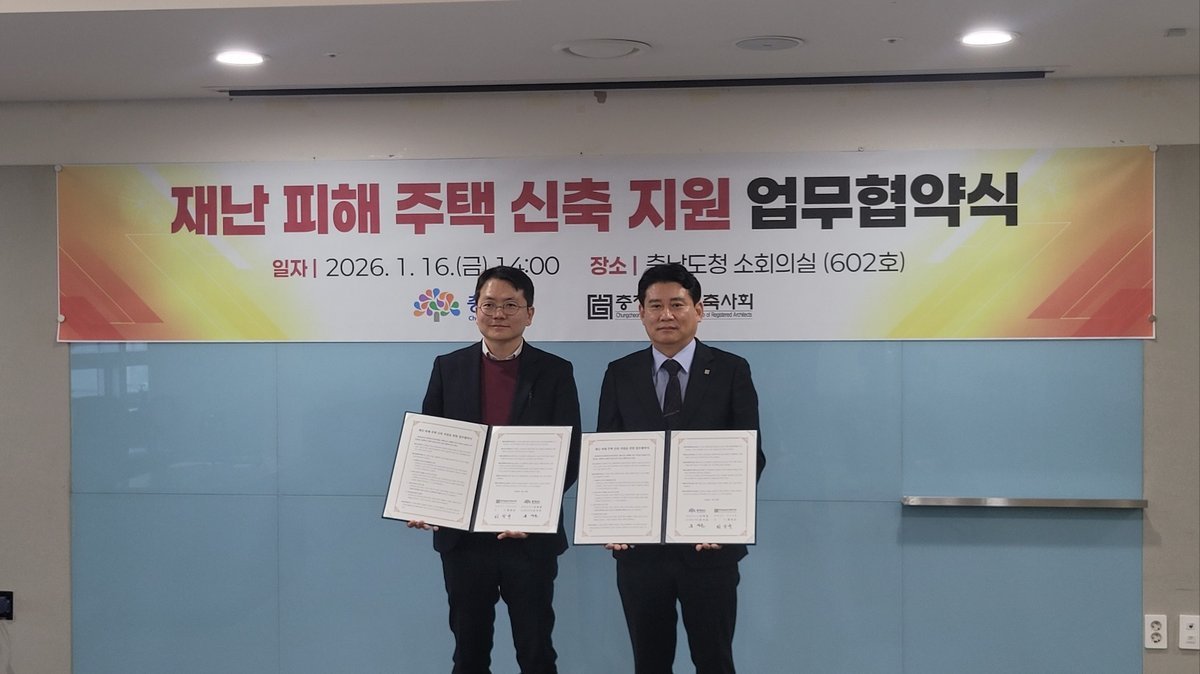 문석준 도 건축도시국장은 “협약이 원활하게 추진될 수 있도록 충남건축사회와 협력해 나갈 것”이라며 “재난 피해 도민들의 신속한 주거 안정을 위해 최선을 다하겠다”고 강조했다.