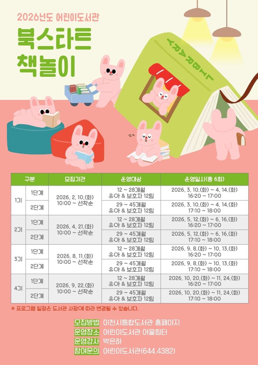 [금요저널] 이천시 어린이도서관이 2026년 영유아와 양육자를 위한 ‘북스타트 책놀이’프로그램을 운영한다.