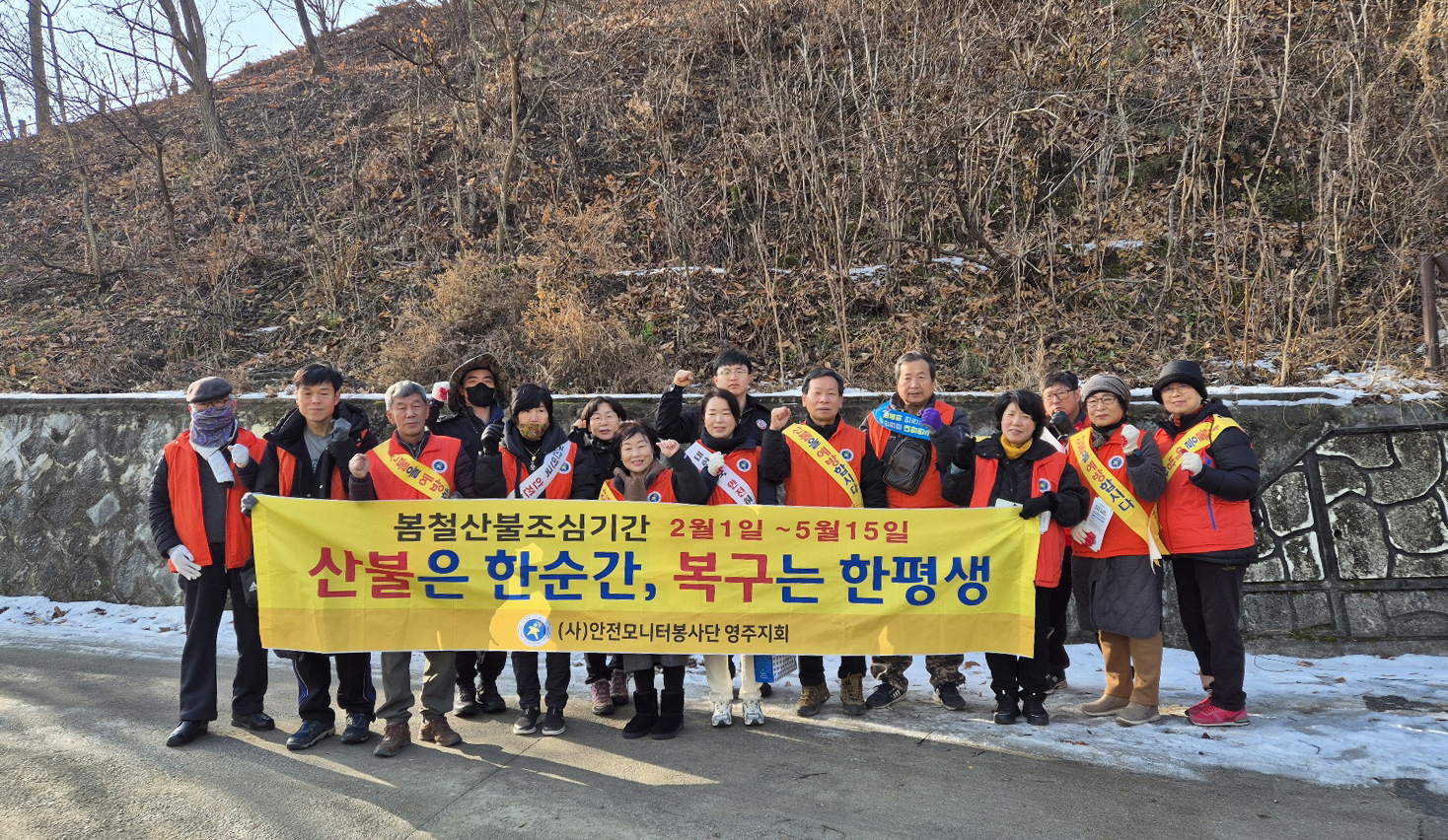 이번 캠페인은 건조한 날씨로 산불 위험이 커진 가운데, 산림 인접 지역을 중심으로 생활 속 산불 예방 수칙을 알리고 경각심을 높이기 위해 마련됐다. 특히 사단법인 안전모니터봉사단 영주지회와 협력해 민관이 함께 참여하는 방식으로 진행됐다.