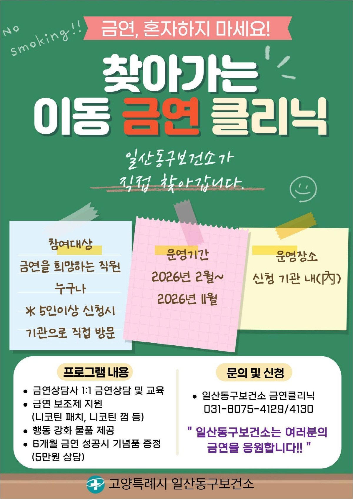 [금요저널] 고양특례시 일산동구보건소는 보건소 방문이 어려운 직장인 흡연자를 대상으로 ‘찾아가는 금연클리닉’을 운영한다고 19일 밝혔다.