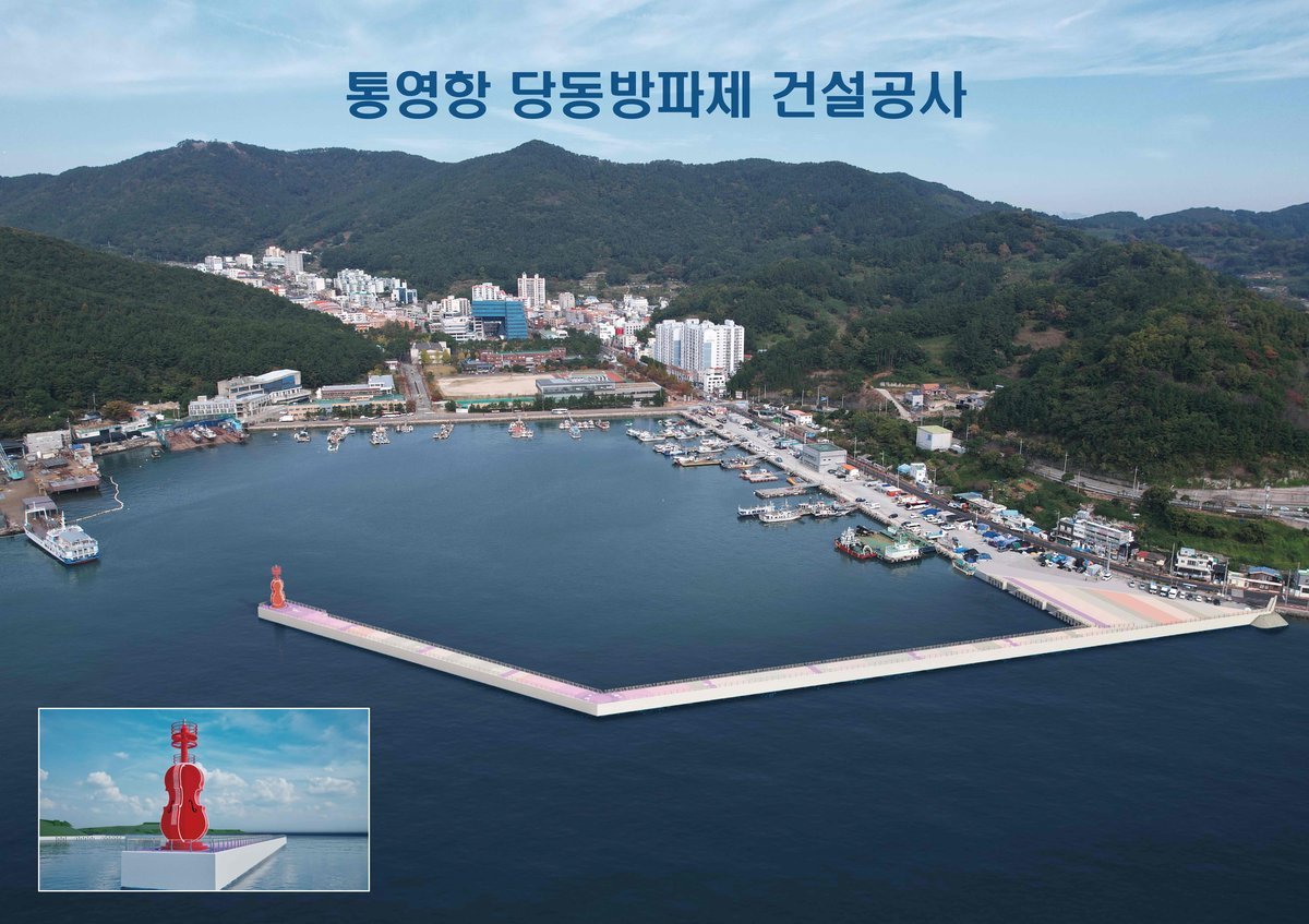 특히 올해 신규 발주되는 통영항 당동 방파제 건설공사는 통영 출신의 세계적인 작곡가 윤이상의 첼로를 형상화한 조형 등대와 경관조명을 반영해 통영의 밤바다 경관을 특화하고, 디피랑과 통영대교 등 인근 관광자원과 연계한 지역관광 활성화에도 기여할 것으로 기대된다.
