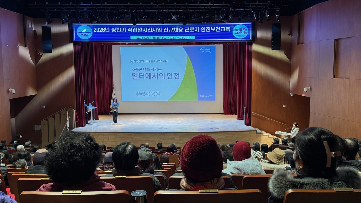 [금요저널] 예산군은 지난 19일 군청 추사홀에서 예산군 직접일자리사업 근로자와 담당자 등 280여명을 대상으로 산업안전 및 중대재해 예방을 위한 안전보건교육을 실시했다.