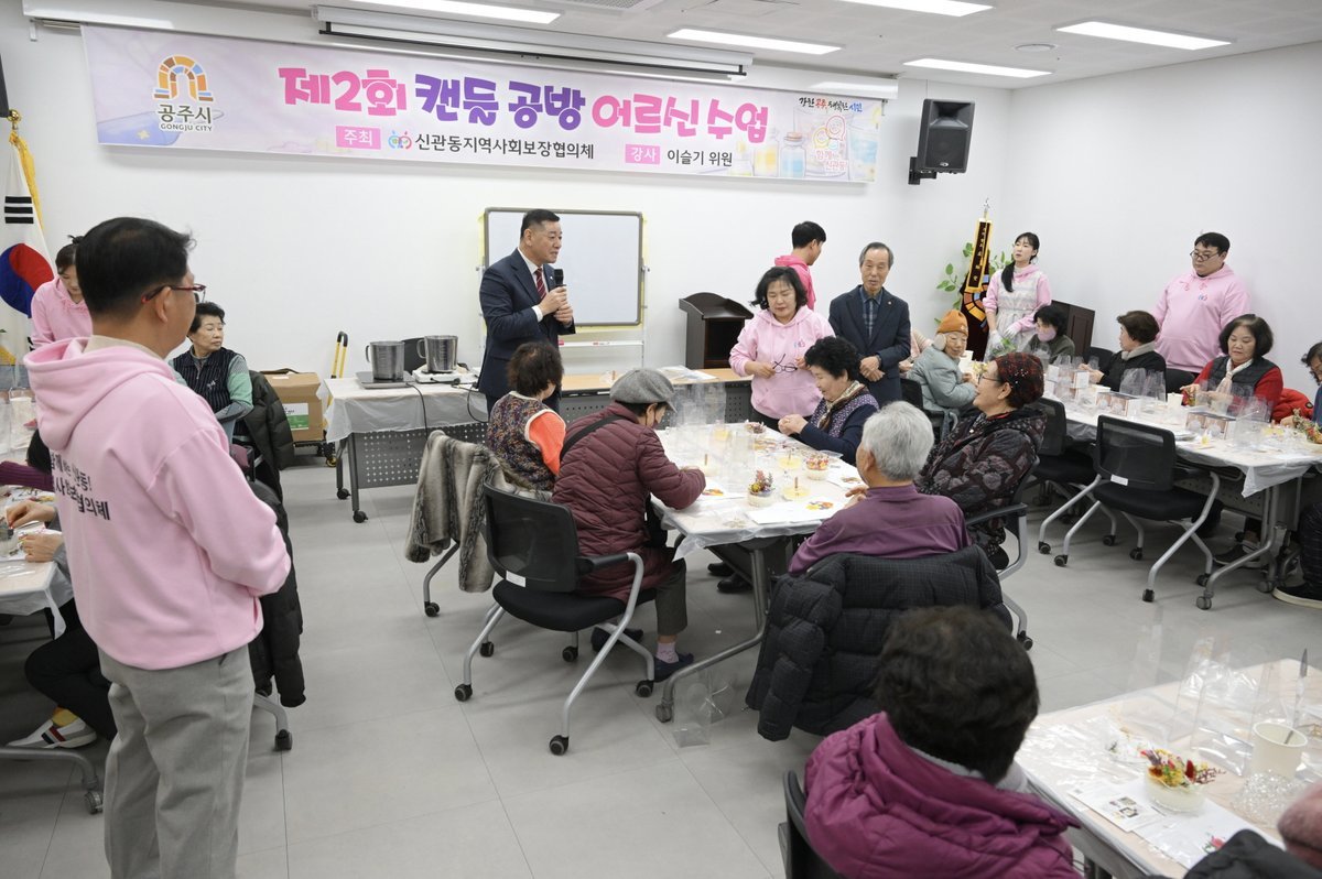 [금요저널] 공주시 신관동은 지난 19일 신관동 주민자치센터에서 신관동 지역사회보장협의체 특화사업의 하나인 ‘캔들공방 어르신 수업’을 진행했다고 밝혔다.