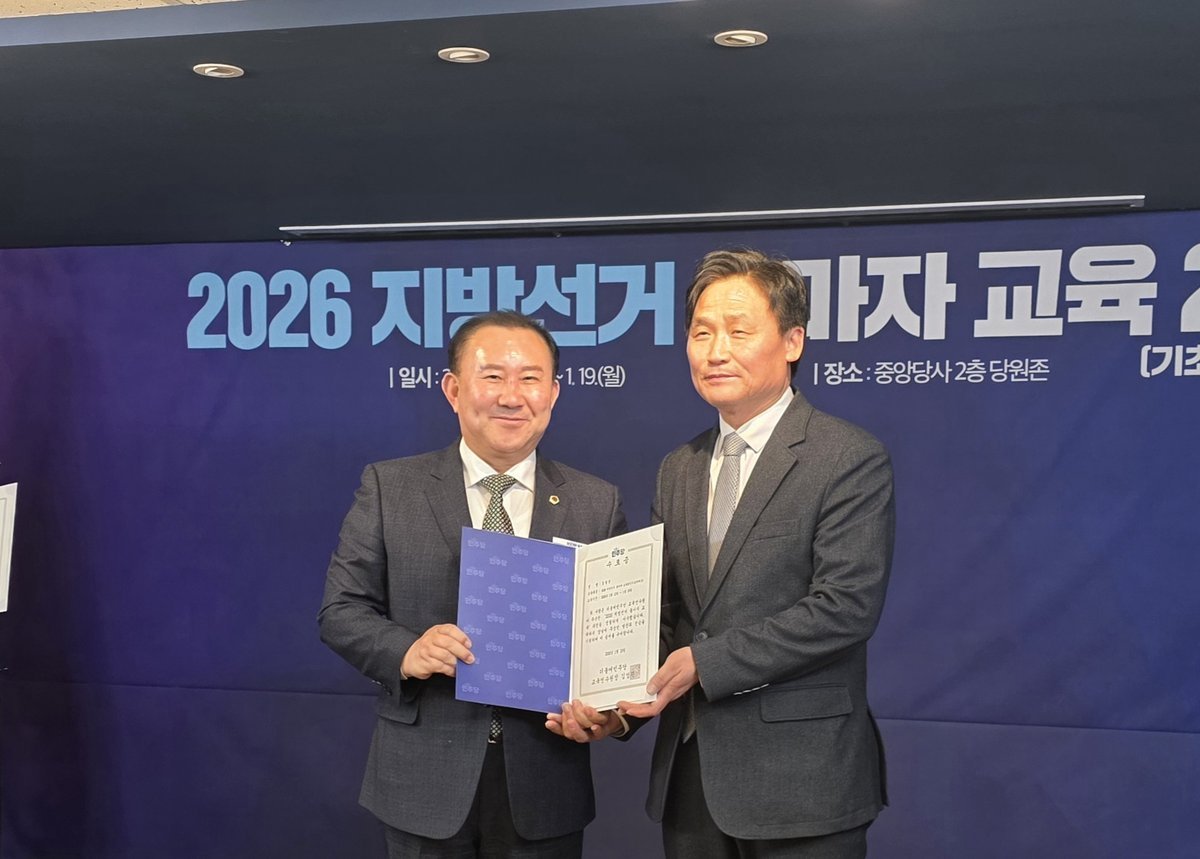 이번 교육 과정은 2026년 지방선거를 앞두고 기초단체장 출마예정자들을 대상으로 더불어민주당 중앙당사에서 진행됐으며 정청래 당대표의 특강을 비롯해 조승래 사무총장의 국정 운영과 당의 역할에 대한 강의, 김영진 교육연수원장의 현장 중심 실천 교육 등으로 구성돼 실질적인 행정 역량 강화에 초점이 맞춰졌다.