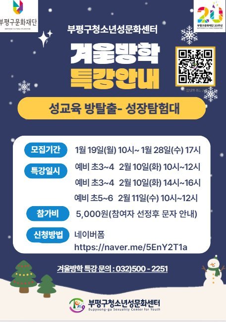 자세한 사항은 부평구청소년성문화센터 누리집 및 카카오채널을 통해 확인할 수 있다.