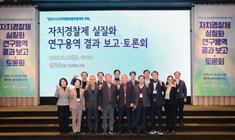 [금요저널] 전국 시도자치경찰위원장협의회는 지난 1월 16일, 서울에서 ‘자치경찰제 실질화 연구용역 결과 보고 및 토론회’를 개최했다. 서울특별시자치경찰위원회와 전라남도자치경찰위원회가 공동 주관한 이번 토론회는 현 정부의 핵심 국정과제인 ‘이원화 자치경찰제 단계적 시행’을 앞두고, 전국 시도자치경찰위원회가 지향하는 ‘완전한 자치경찰제’의 구체적인 방향을 공유하고 공동 대응 방안을 모색하기 위해 마련되었다.
