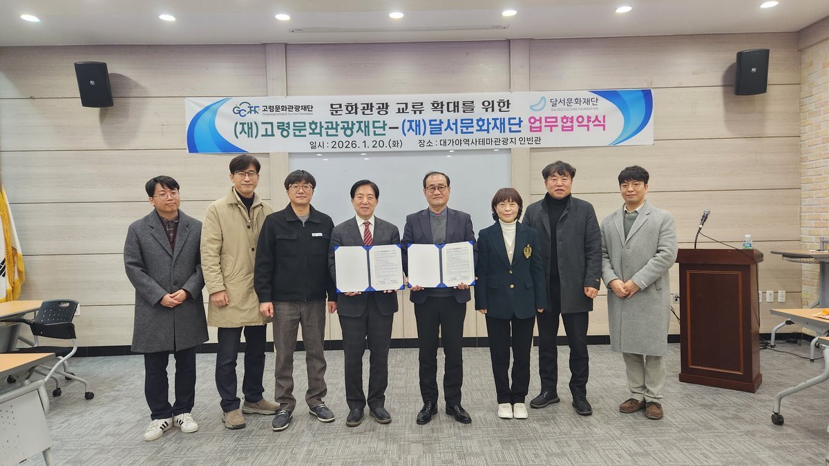 [금요저널] 고령문화관광재단과 달서문화재단은 지난 1월20일 고령군에 소재한 대가야역사테마관광지 인빈관에서 두 기관 관계자들이 참석한 가운데 상호협력 확대를 위한 업무협약을 체결했다.