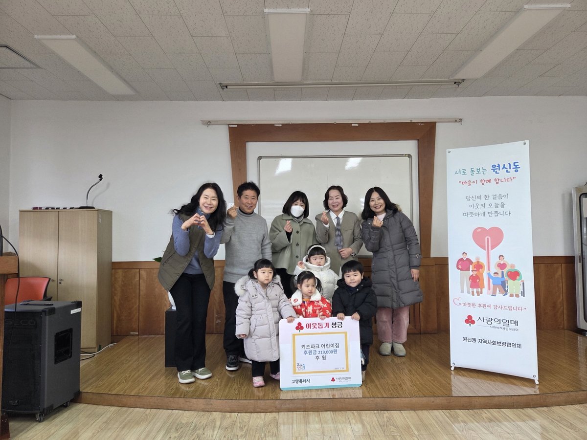 [금요저널] 고양특례시 덕양구 원신동은 지난 20일 키즈파크 어린이집으로부터 연말연시 이웃돕기를 위한 성금 21만 9천 원을 전달받았다고 밝혔다.