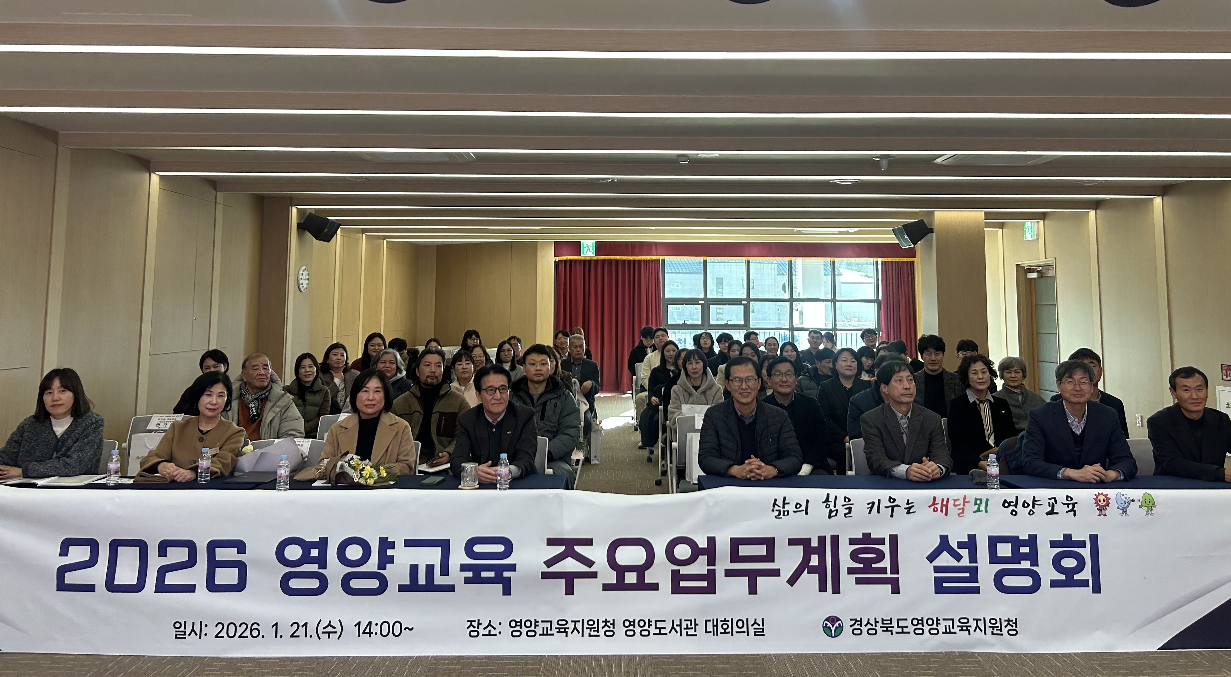 □ 경상북도영양교육지원청(교육장 박근호)은 2026년 1월 21일(수) 신축 경상북도교육청 영양도서관 대회의실에서 ‘삶의 힘을 키우는 해달뫼 영양교육’실현을 위한 「2026 영양교육 주요업무계획 설명회」를 개최하였다.