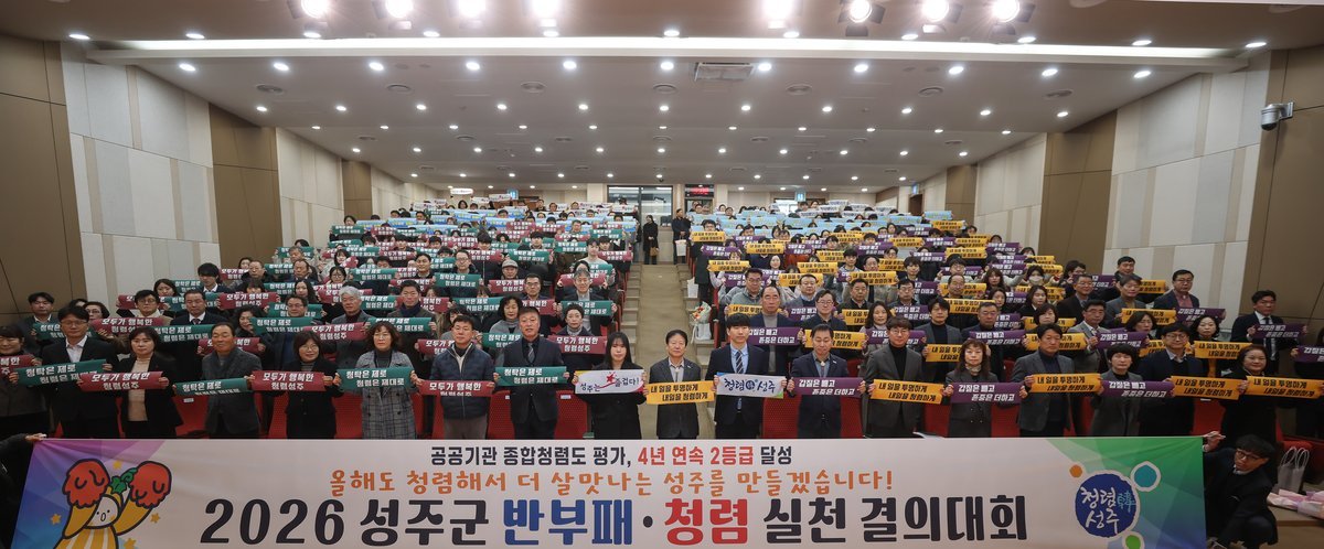 성주군 관계자는 “종합청렴도 4년 연속 2등급 유지에 안주하지 않고, 올해도 공직자 모두가 청렴한 행정 구현을 위해 지속적으로 노력하겠다”고 밝혔다.